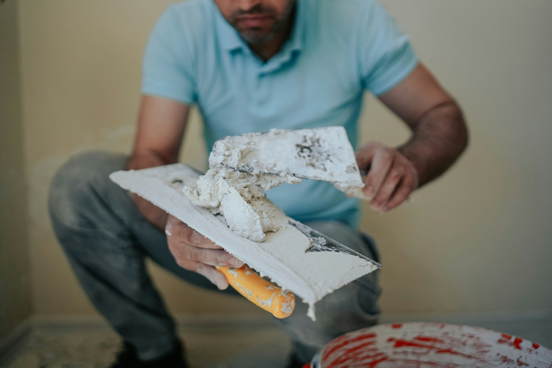 - Arbejd i små sektioner, så mørtlen ikke når at tørre, før du glatter den.